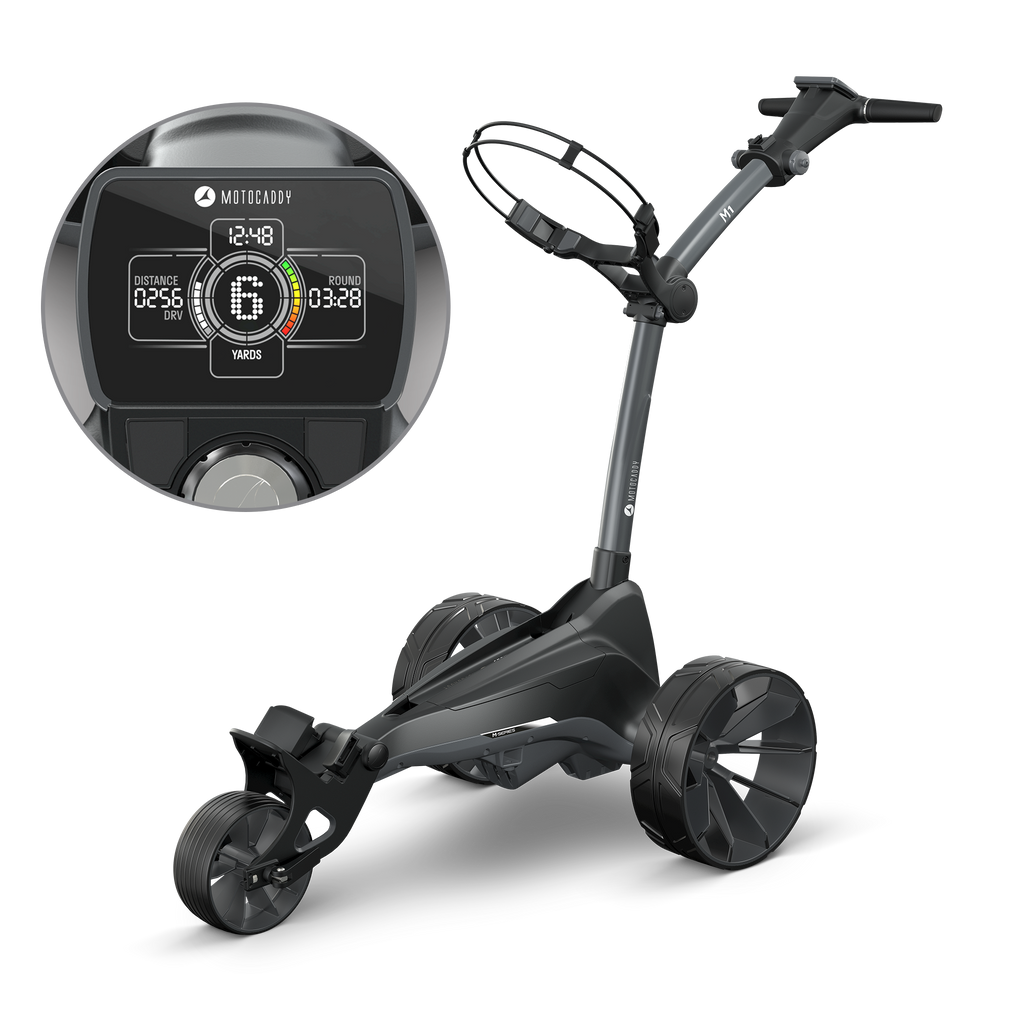 Power comes from Motocaddy’s high-capacity CLICK ‘N’ CONNECT® cable-free lithium battery, featuring patented auto-disconnect technology and a convenient pop-up charging port. Combined with a next-generation 28V high-power system and a whisper-quiet 230W motor, the M1 delivers smooth, reliable performance with impressive efficiency.