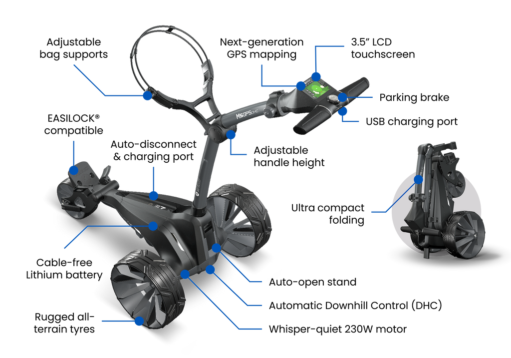 Bursting with game-enhancing technology, the all-new 2026 Motocaddy M5 GPS DHC combines advanced GPS intelligence with automatic downhill control, delivering total confidence and precision on even the most demanding courses.